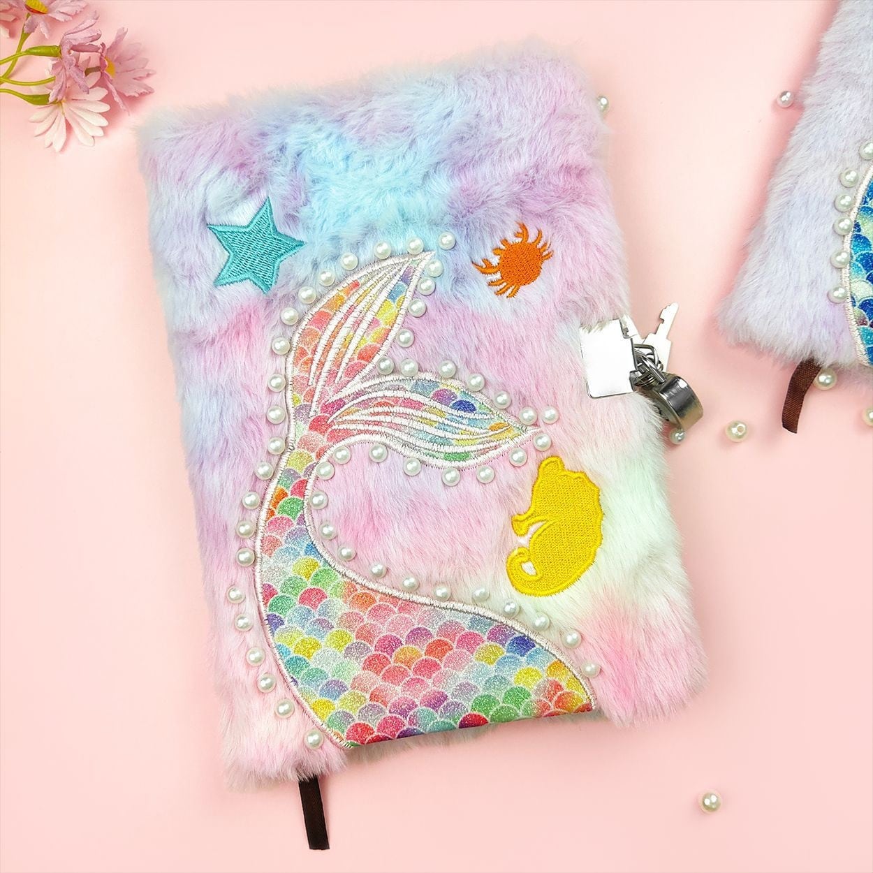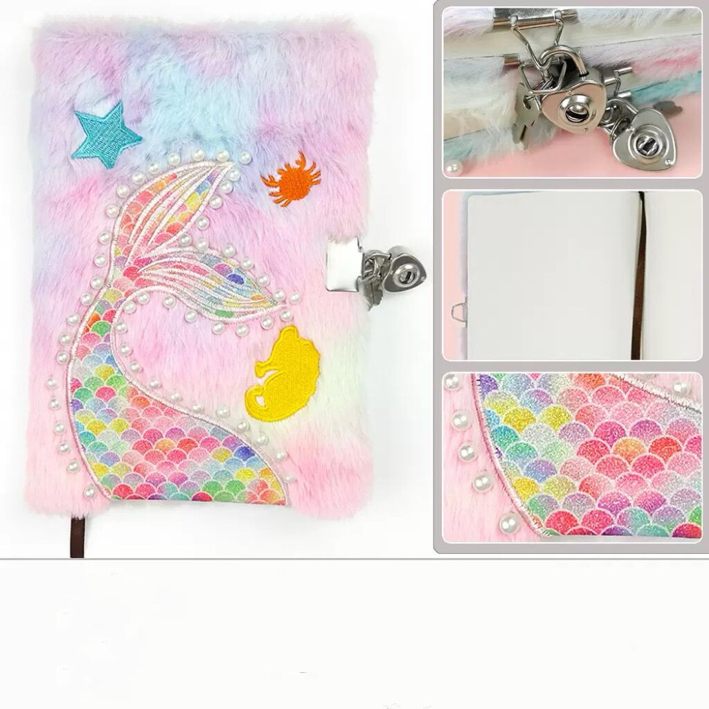 ふわふわ マーメイド ノート 鍵付き 日記帳 可愛い 女の子 プレゼント キラキラ人魚